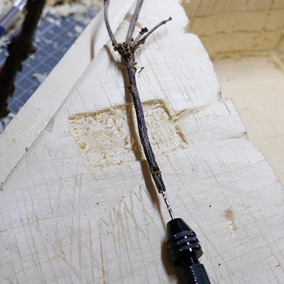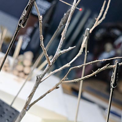 Quelques brindilles, de la colle et c’est parti pour la création d’un arbre. Des brindilles coupées et votre stock de bûches vous attend.