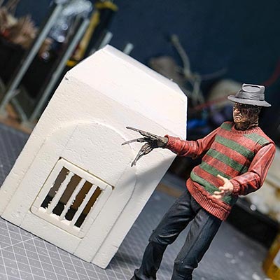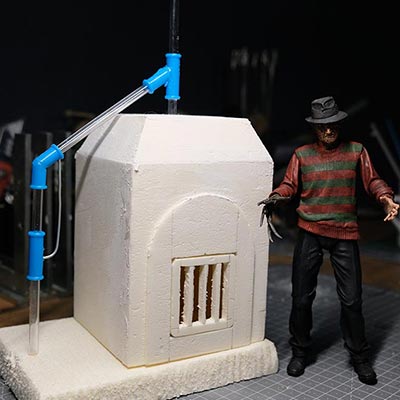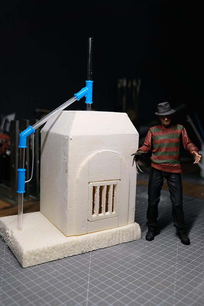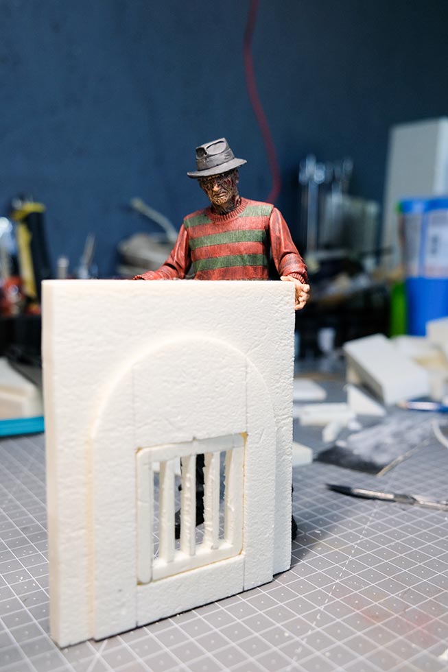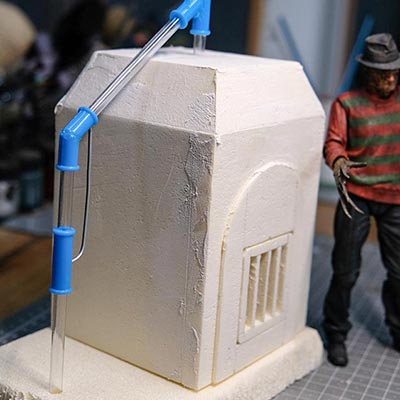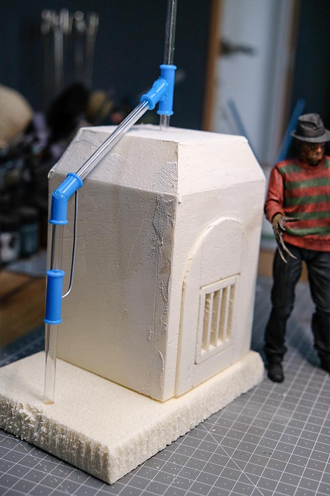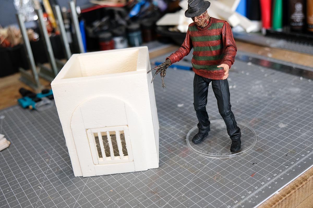 Une grande plaque de polystyrène sera indispensable pour ces deux tueurs immortels du cinéma des années 80. Première étape, la création de la chaudière.