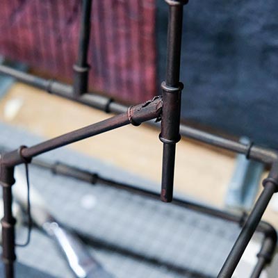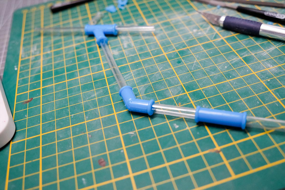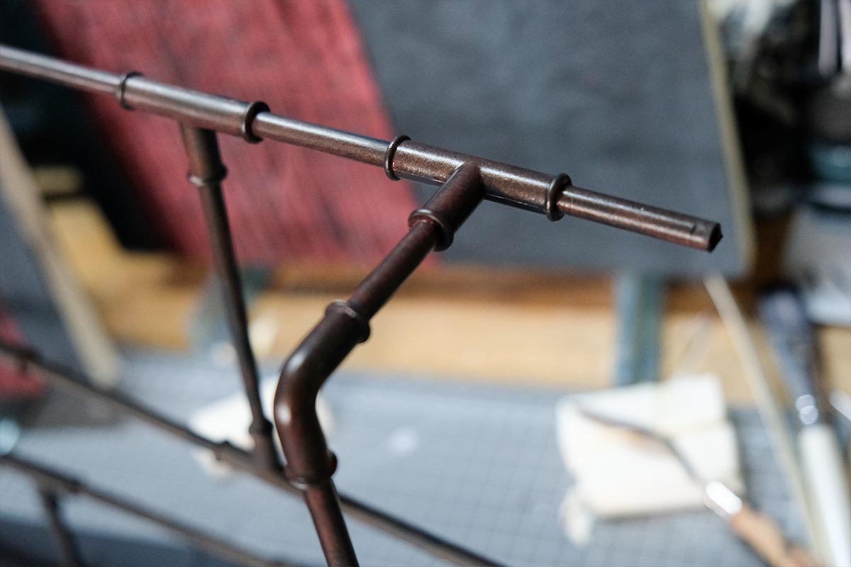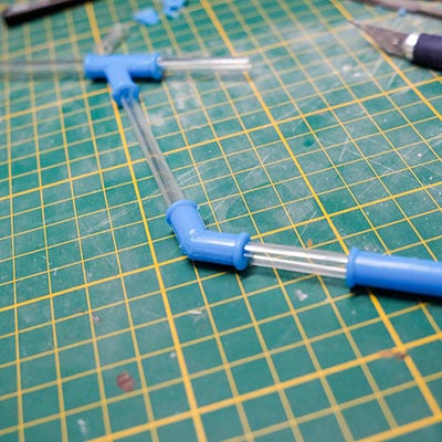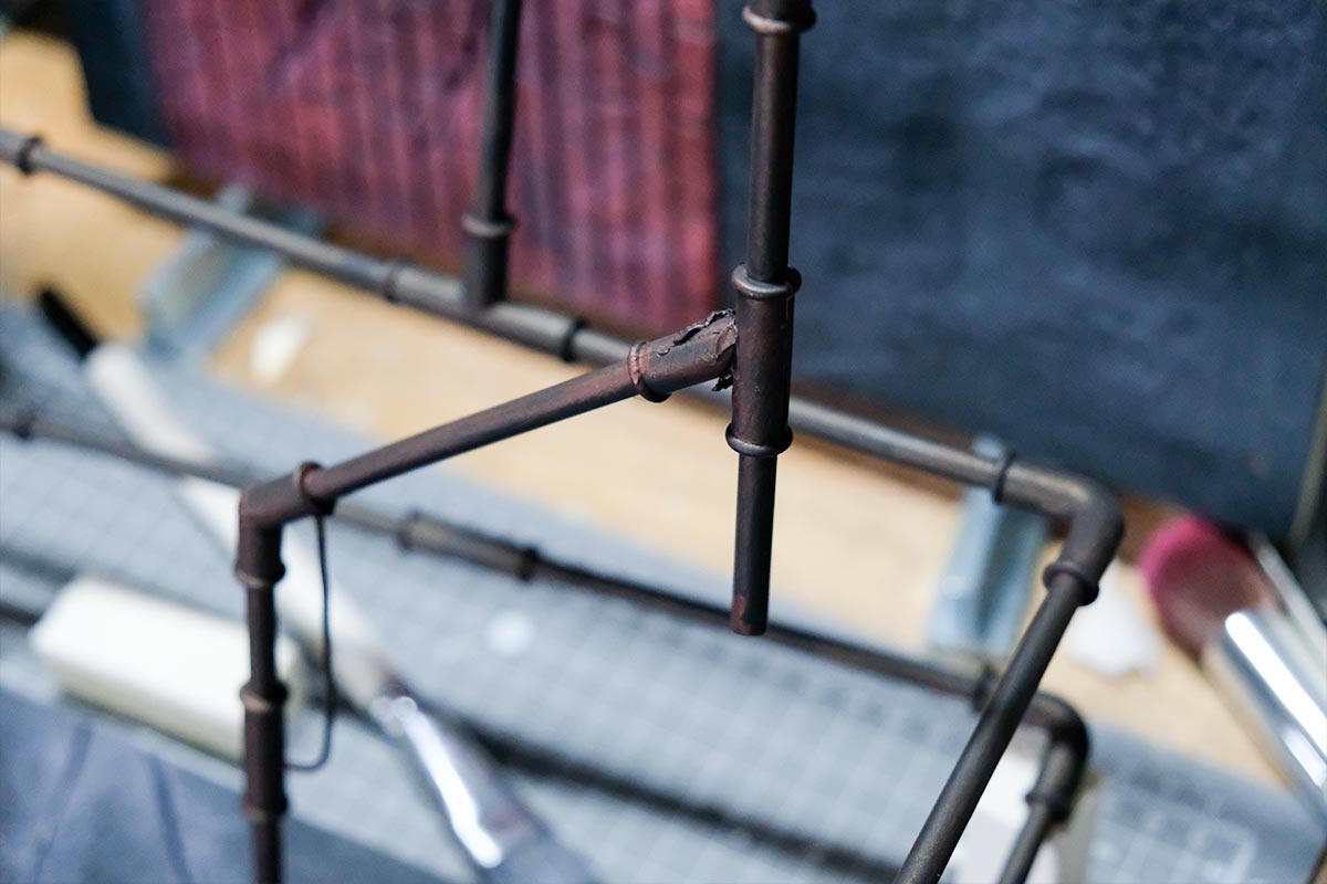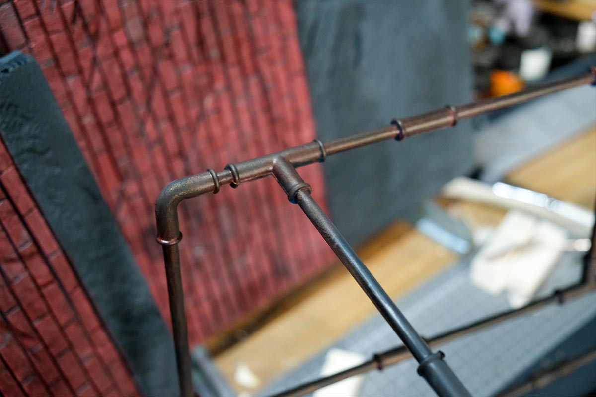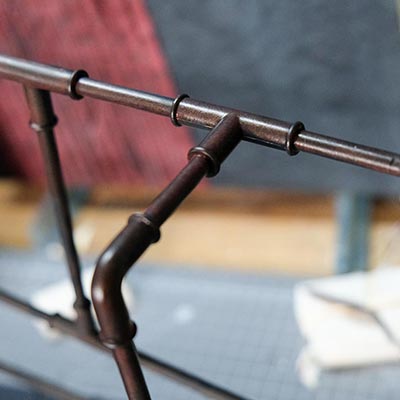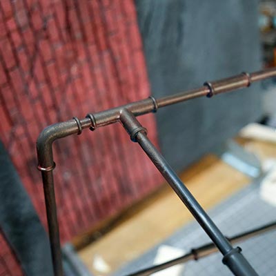 En parallèle, création de la "tuyauterie" qui sera au départ de la chaudière (à partir de paille).