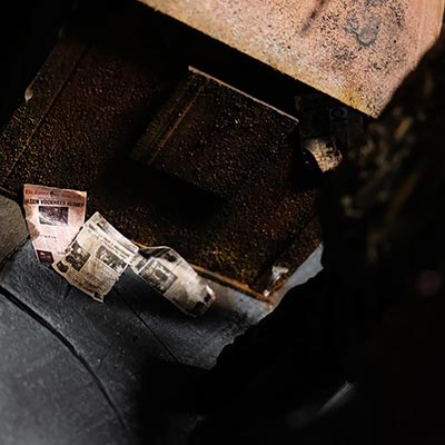 Les journeaux au pied et sur le container ont trempés dans un fond d'eau mélangé avec de la colle à bois. Placé ensuite au pinceau silicone.