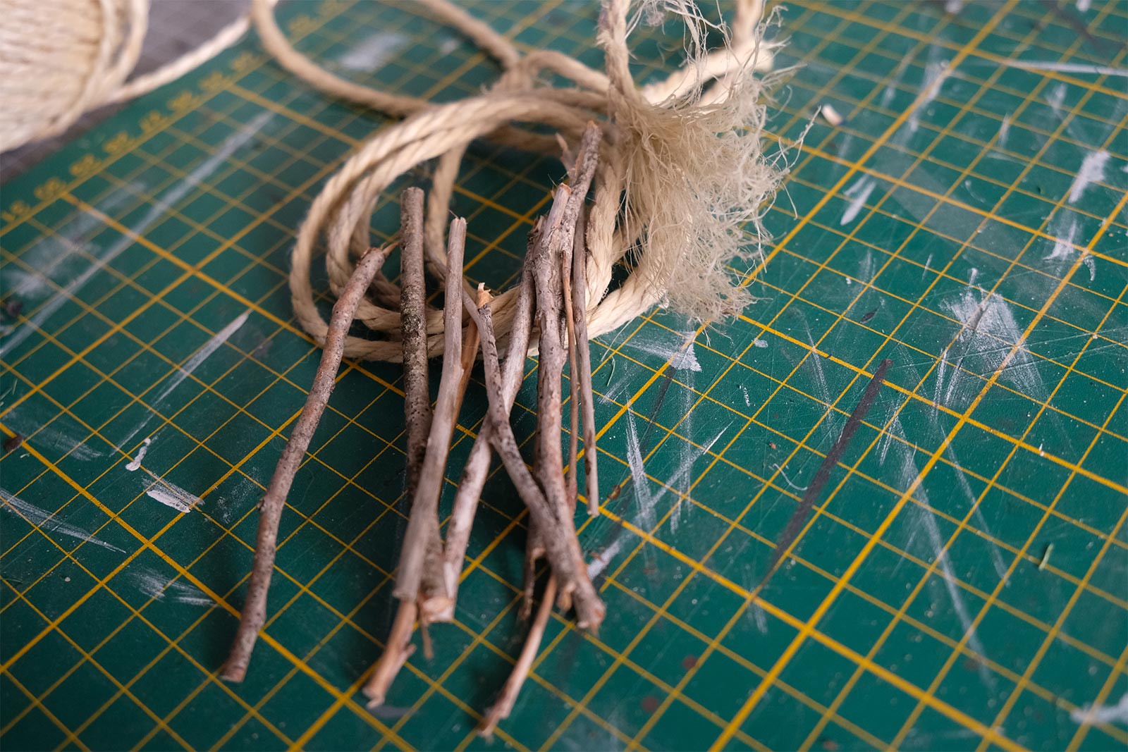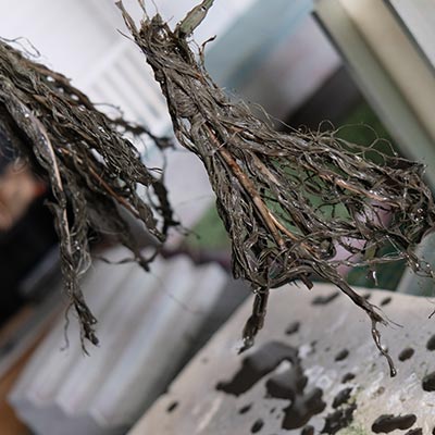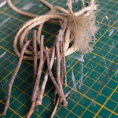 Création des buissons à partir de corde de jus et de sciure de bois