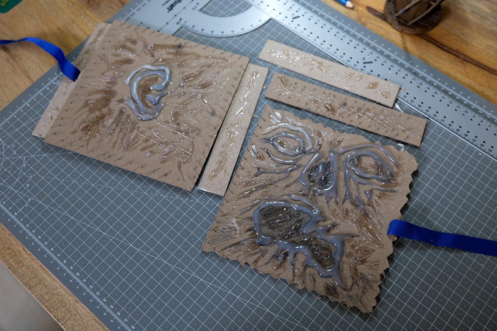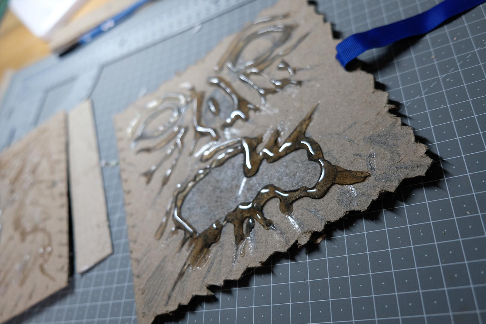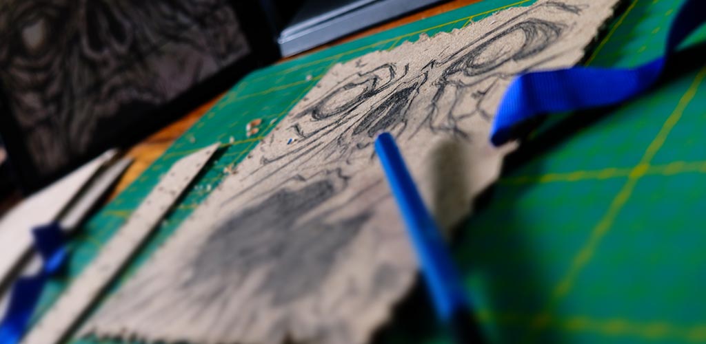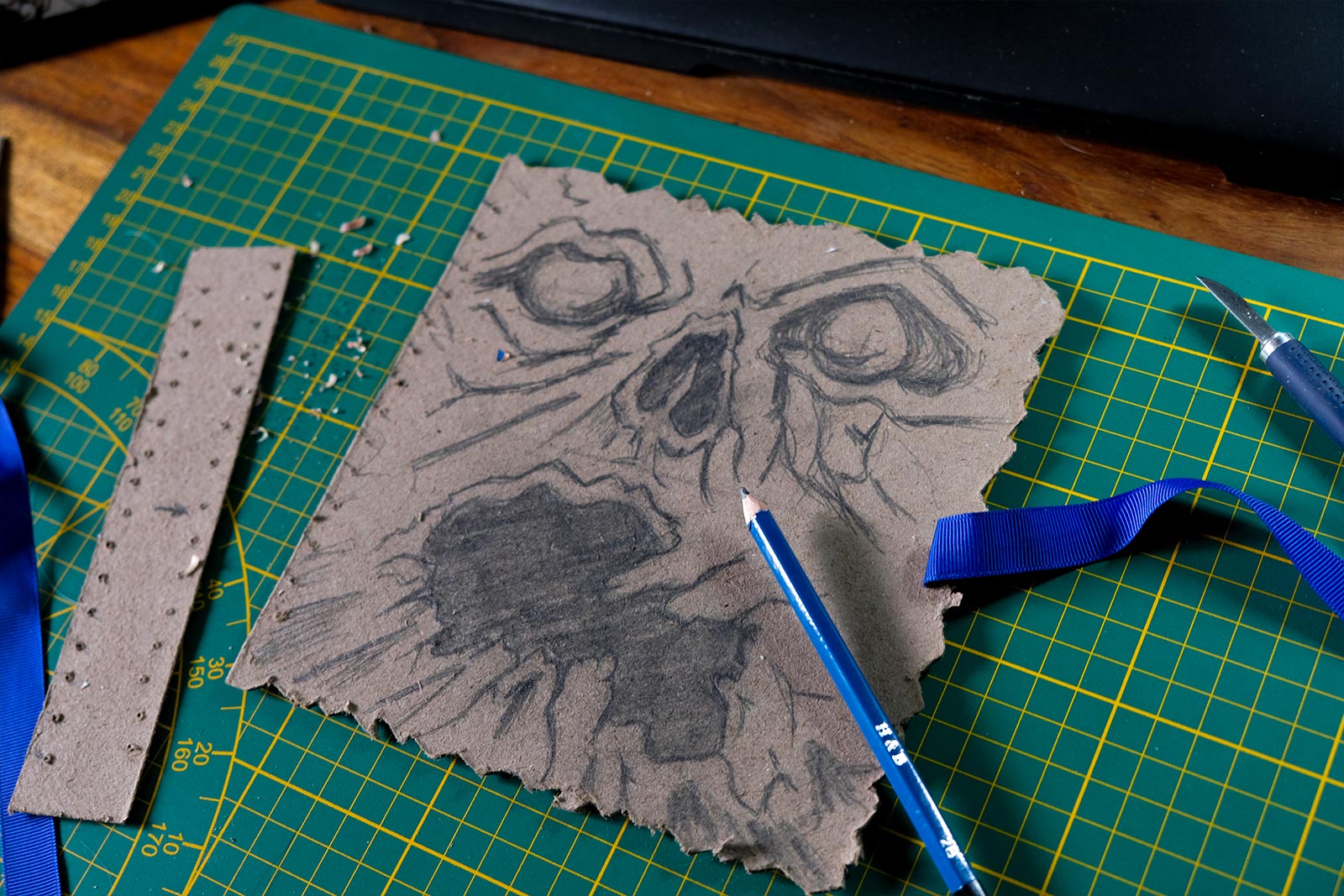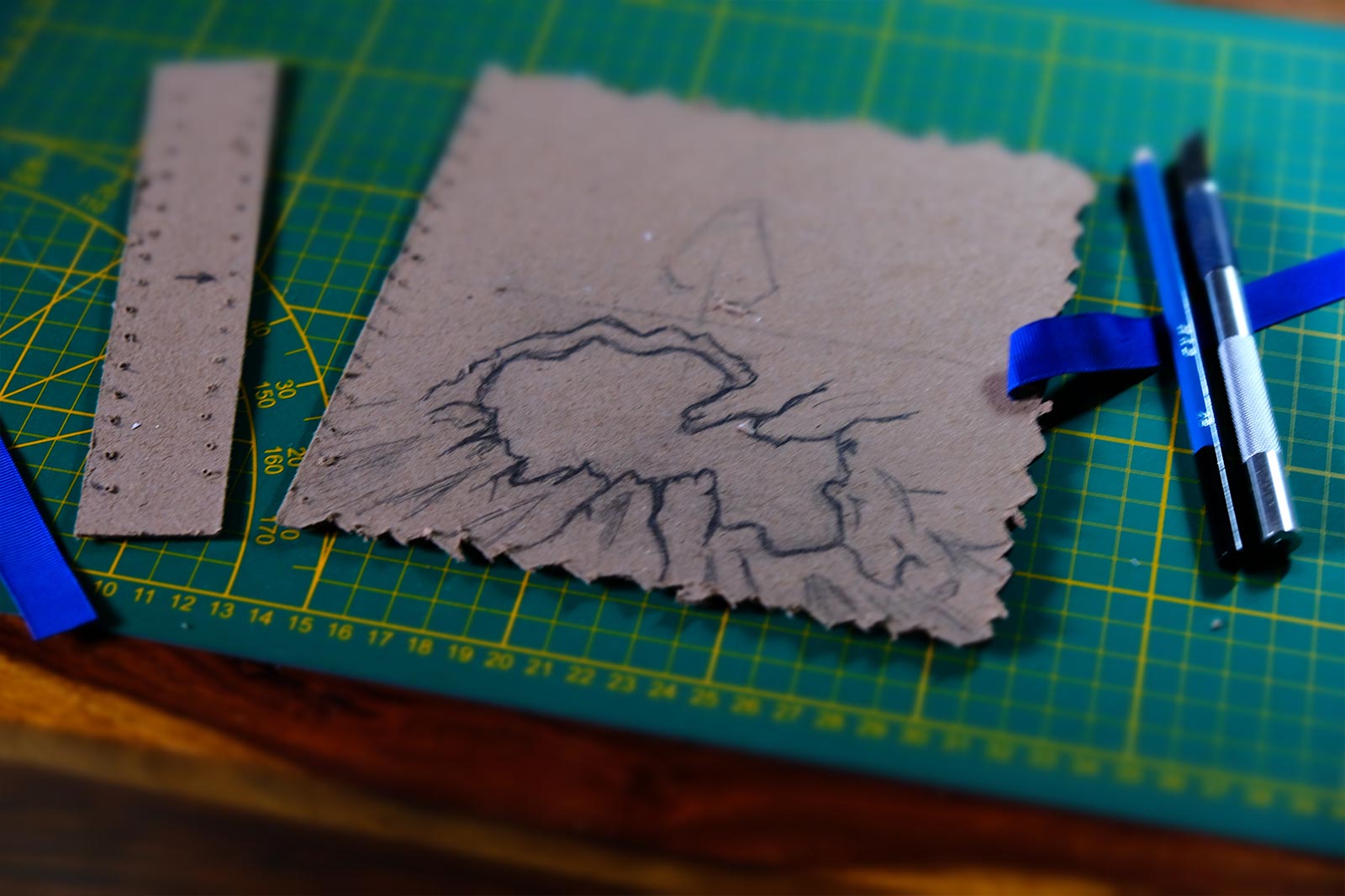 Une boîte en carton découpée, tailladée et remontée, voici la base de cette première création “Le Necromonicon Ex-Mortis”, tiré d’une scène d’Evil Dead III.