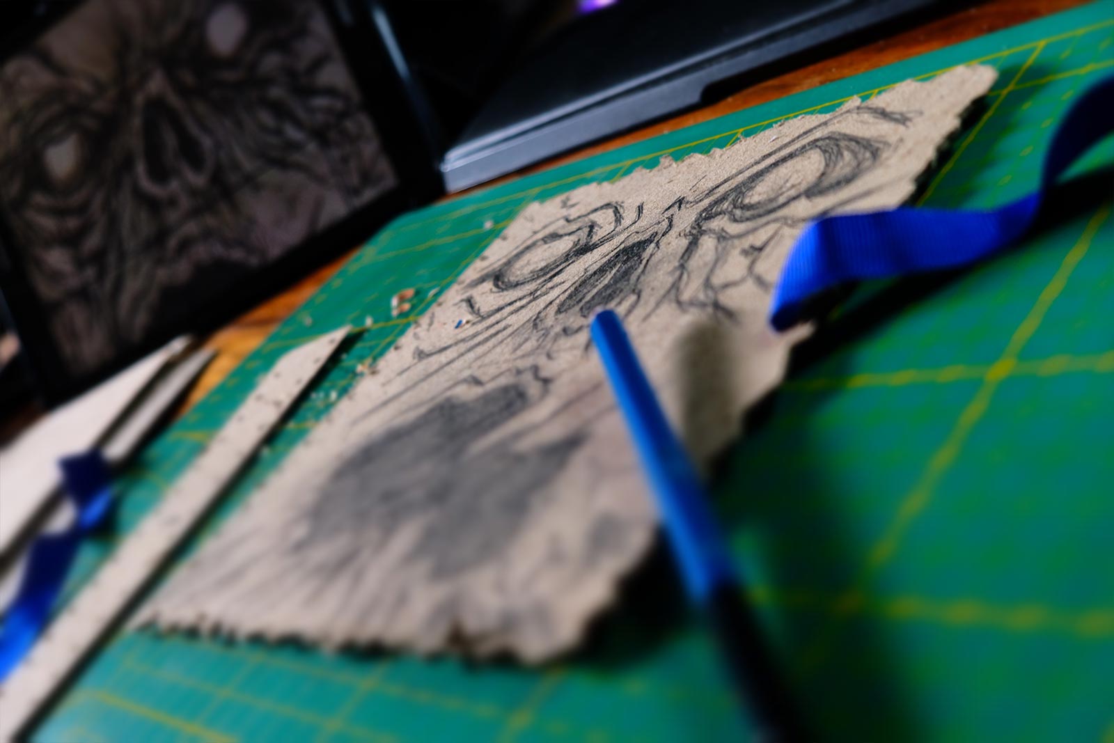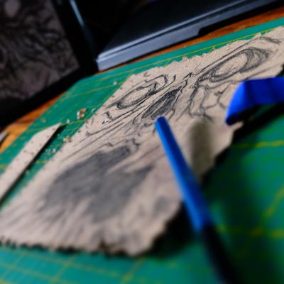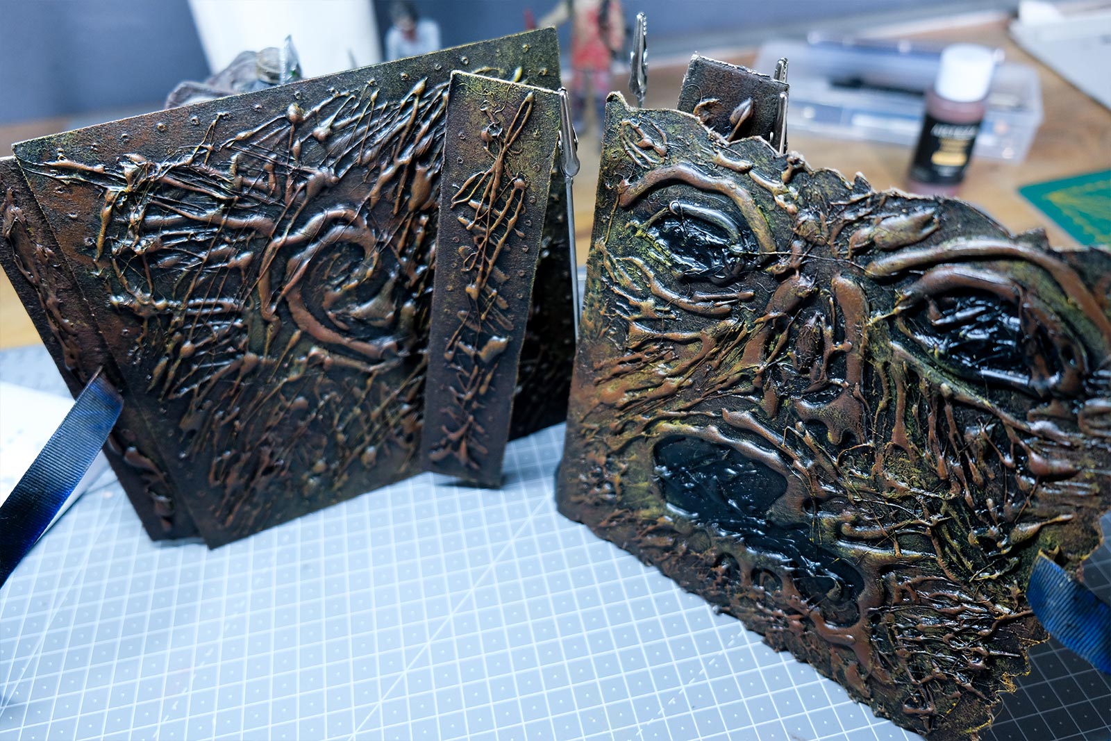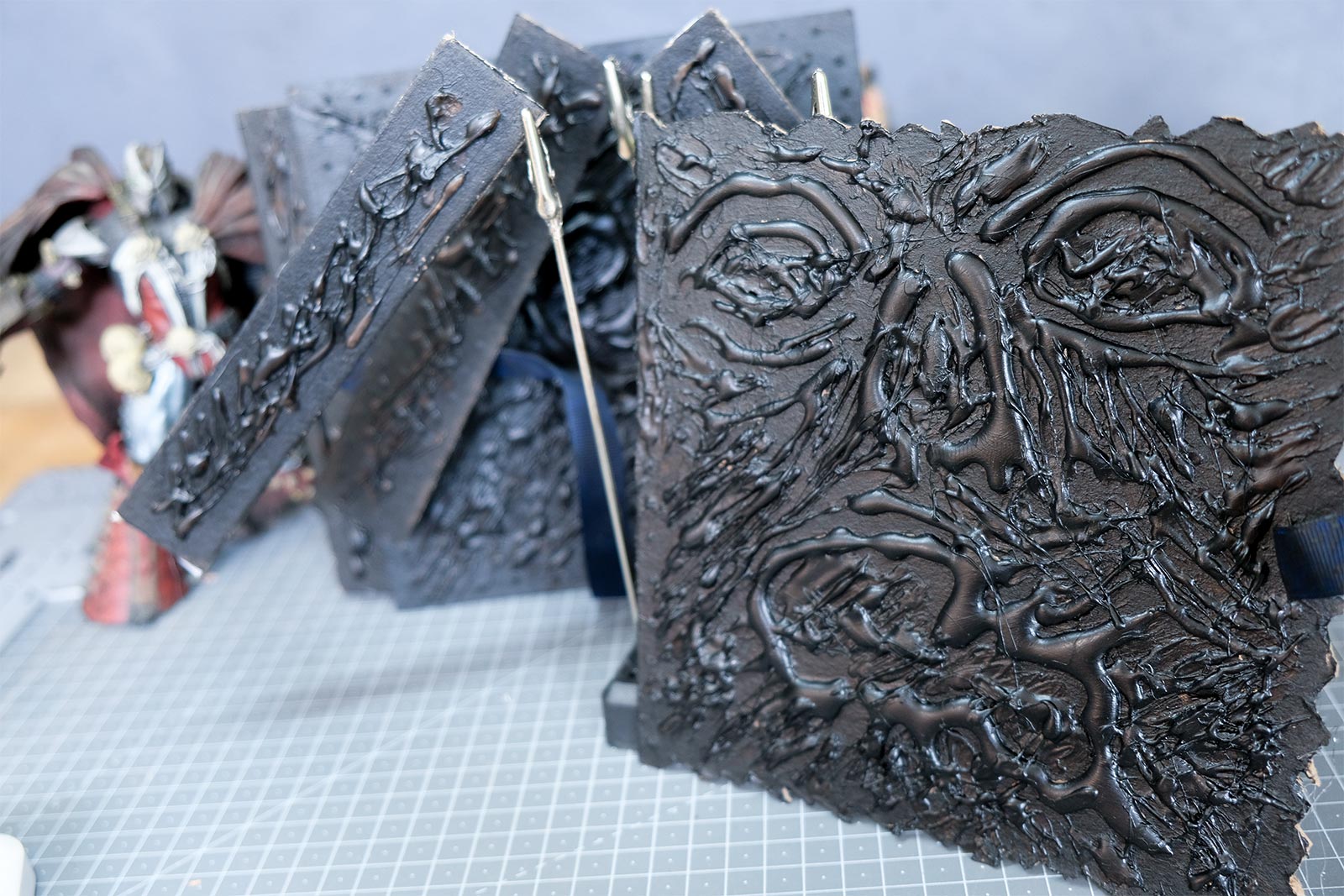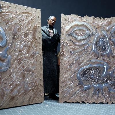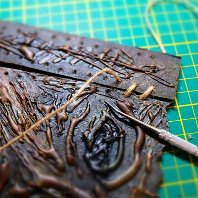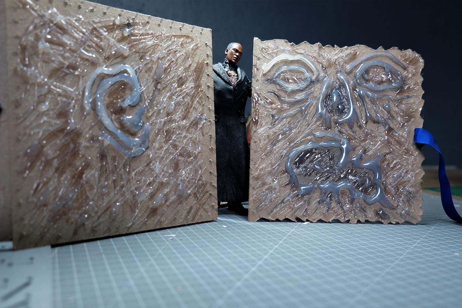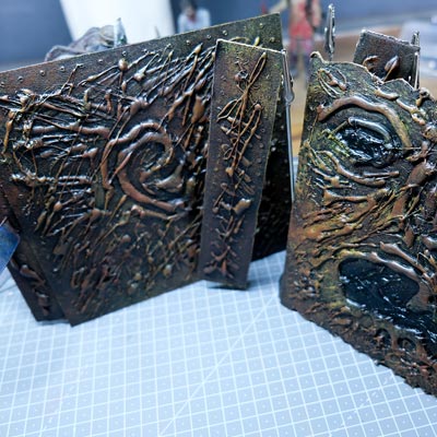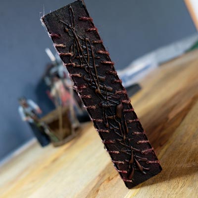 Ce diorama fut assez simple à réaliser, que ce fut en termes de création que d'éléments nécessaires. Du carton, un crayon, un cutter, un pistolet colle, des pinceaux, de la peinture acrylique et de la ficelle de jus. Et voilà, vous avez toutes les armes en main pour vous y mettre et créer votre propre “Necromonicon”.